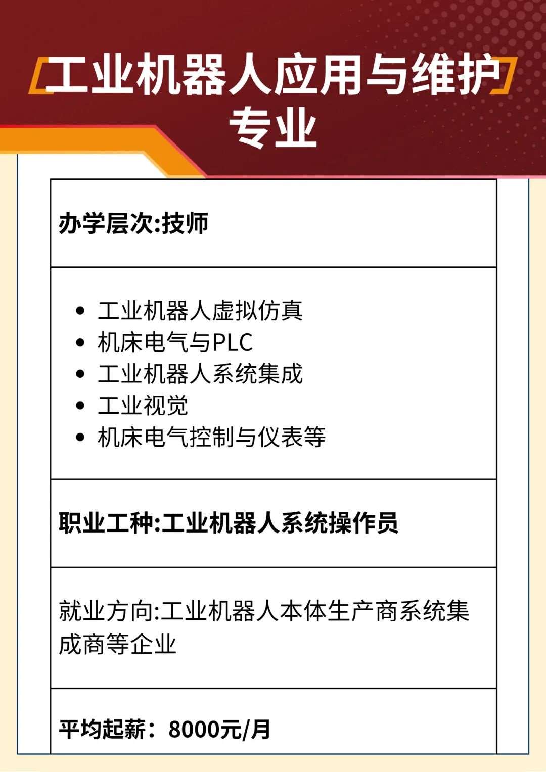 大学生技师班:机器人应用与维护专业招生简章