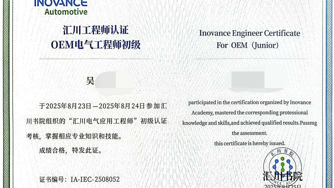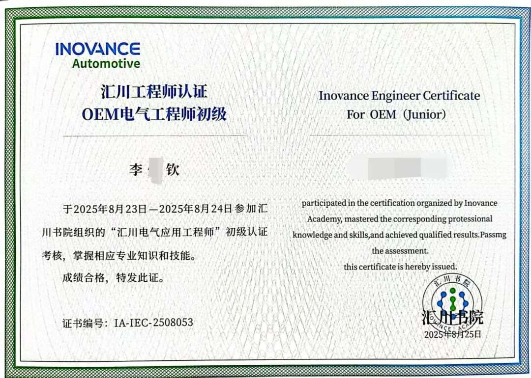 值得庆贺的是,此次鸿富技加的学员均汇川工程师认证。该认证考核涵盖PLC控制、编程调试等关键领域,持有者被行业公认为“高含金量人才”。当前,自动化企业普遍急需这类技术专才,能独立完成系统设计、调试维护的工程师起薪可达上万元,就业前景广阔。这一认证不仅证明专业能力,更能在广阔应用场景中释放职业潜力。