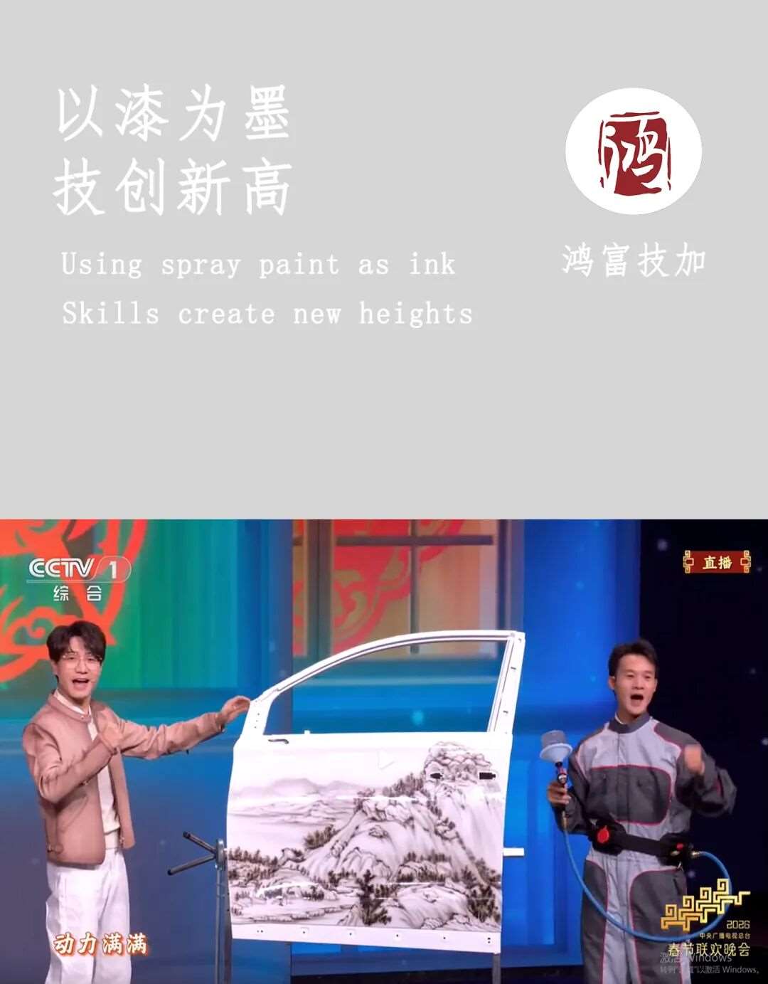 除夕,万家团圆时。在中央广播电视总台2026年马年春节联欢晚会的舞台上,一道融合了传统技艺与现代创新的光芒惊艳全场——由杭州技师学院教师、第44届世界技能大赛汽车喷漆项目得主蒋应成参与演出的节目《每道光》,以其独特的“汽车喷漆山水画”艺术,向全国观众展现了技能之美与工匠精神的深度。
