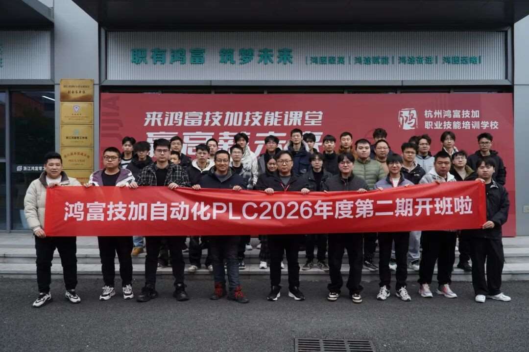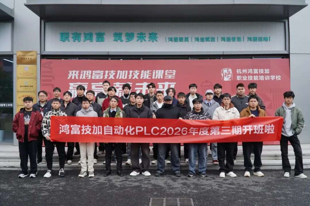 春潮涌动启新程,技能逐梦正当时!随着“十五五”规划对职业教育发展的重点部署落地,“强化技能人才培养、推动职业教育提质增效”成为时代强音,而大学生毕业去向从“卷学历”到“拼技能”的转变,更让智能制造、工业自动化成为万千青年的“黄金赛道”。今日,杭州鸿富技加智能制造实训基地2026春季班迎来盛大开班,一期、二期已圆满满员,三期火热加开、席位告急,一群怀揣梦想的追光者,齐聚于此,在行业热潮中开启技能蜕变之路!